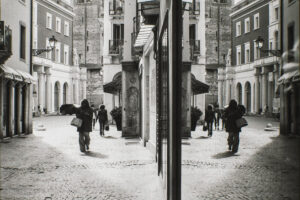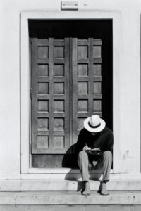 Quando la luce cade giusta, impugna la vecchia Mamiya ereditata da suo padre e cerca volti, gesti, frammenti di vita.