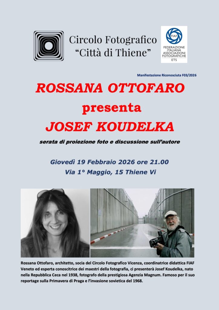 Rossana Ottofaro presenta Josef Koudelka, gio 19 febbraio 2026 Thiene